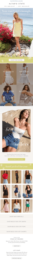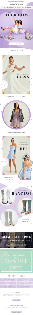 Over my 2+ years at Altar’d State I have made hundreds of marketing emails (for Tullabee, Arula, Altar’d State, and AS Revival) to help sell and showcase product. Here are some of my favorites!