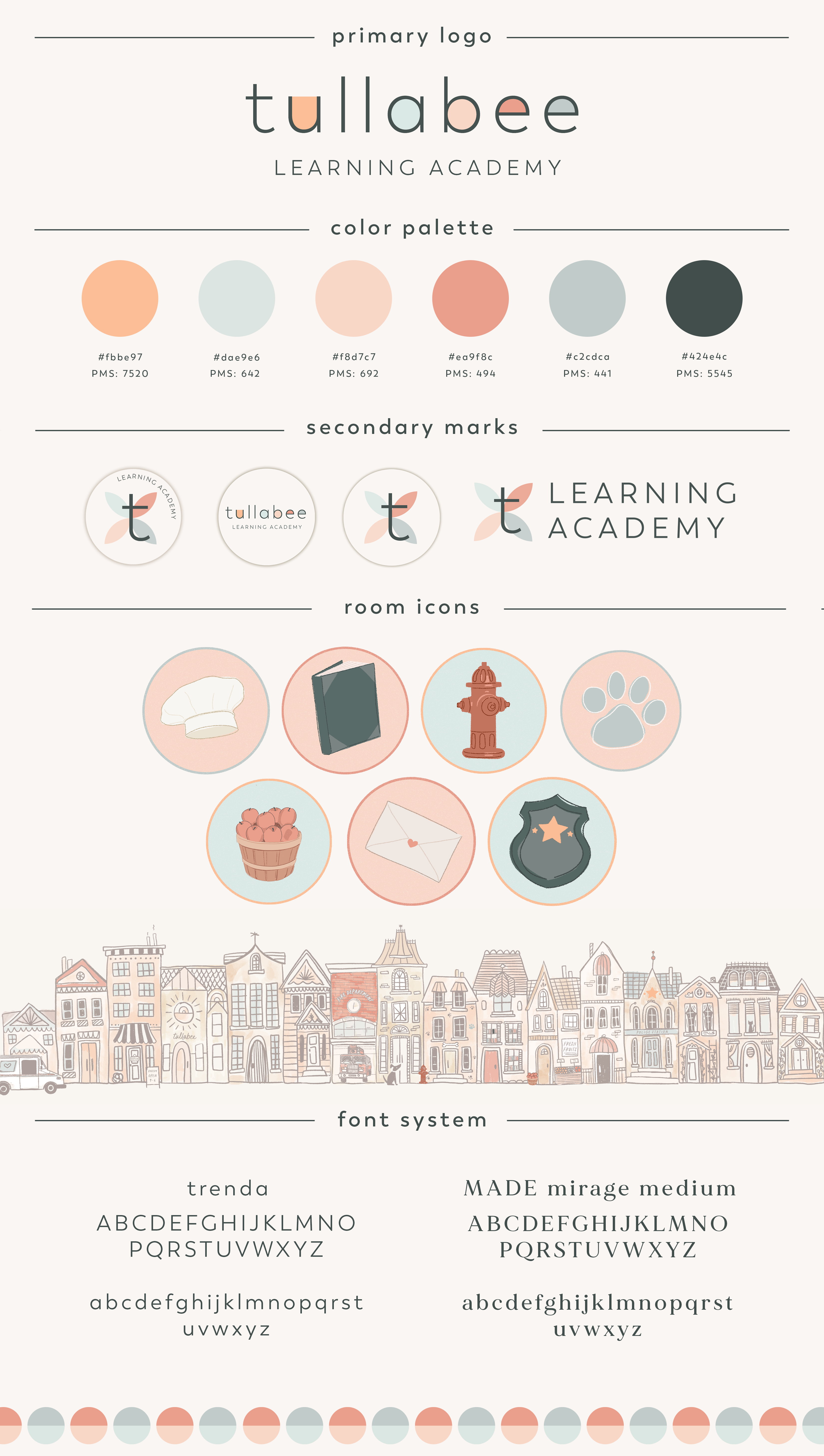 I created the logo, room signage, and other marketing materials for the website and social media channels for the Tullabee Learning Academy.
