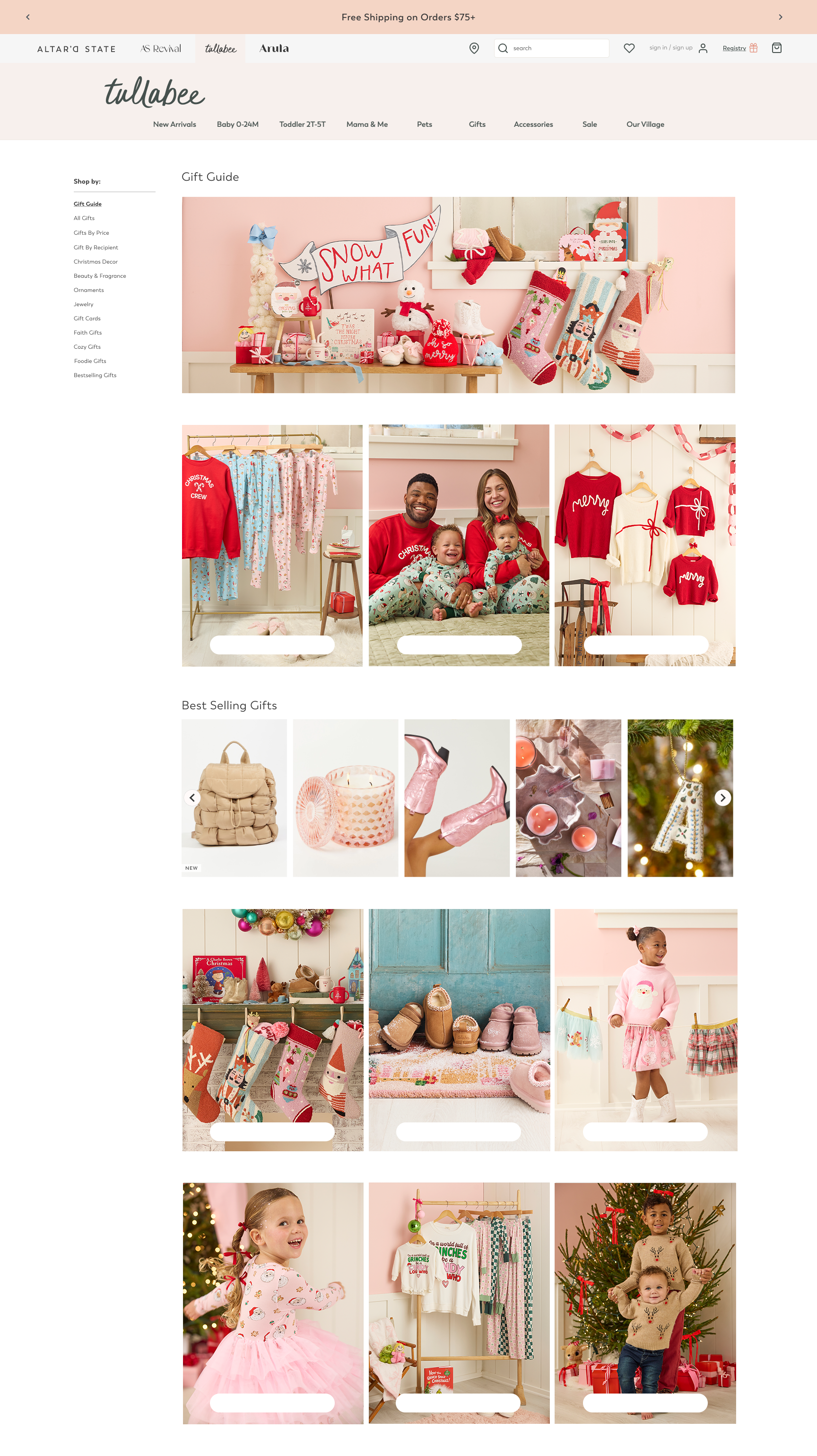 Tullabee is a baby brand I am lead graphic designer for. Each season we update creative across the board to reflect our seasons theme. I took over Tullabee’s creative in February 2023, and have developed new creative each season. This includes- in store signage & pin pads, website creative, marketing emails, SMS/MMS, social design, and many other assets that come a long with all things marketing.